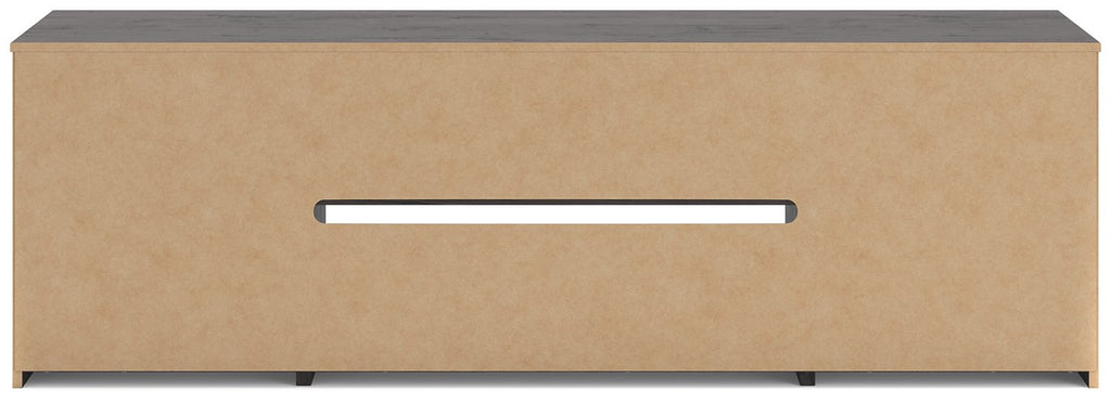This TV stand with electric fireplace embraces a classically charming aesthetic and repurposes it for modern living. Its dark charcoal finish appeals to your love of vintage character, while a chic chevron pattern is effortlessly on trend. Media accessories stay tucked away in style thanks to hidden storage behind the doors. And for added ambiance, the electric fireplace brings a cozy-cool vibe to your living room. With the touch of a button, activate the LED-lit flame and adjust the temperature or the flame brightness. The flame effect includes multiple color options and a realistic-looking faux birch log set.